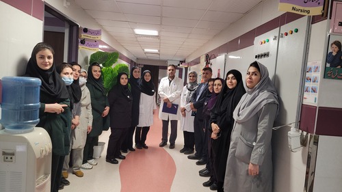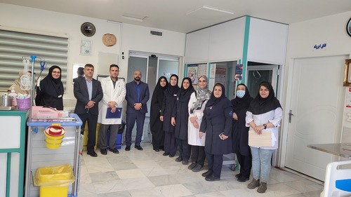 9. بازدید از کل بخش ها توسط تیم محترم مدیریت و رهبری متشکّل از رئیس مرکز- سرکار خانم دکتر زاده مدرّس-، مدیر بیمارستان- جناب آقای عباسی مقدم- به همراه نماینده محترم دفتر پرستاری- سرکار خانم روستا-، عضو محترم هیأت علمی و مسؤول محترم ایمنی بیمارستان- جناب آقای دکتر منصوری-، کارشناس محترم ایمنی بیمار- سرکار خانم دکتر میرزایی- و مسؤول محترم حراست- سرکار خانم عشیری-) و صحبت در خصوص روز جهانی ایمنی بیمار و شعار آن و گرفتن عکس یادگاری با کارکنان بخش